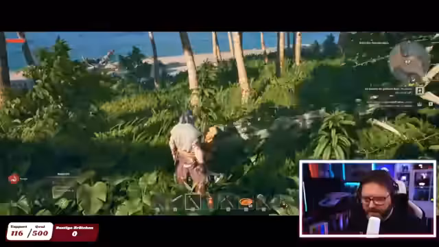 00:36:24Das Erlebnis im Spiel wird durch häufige und oft verlustreiche Kämpfe geprägt. Der Streamer konfrontiert sich mit wilden Ebern, Piraten und anderen Gefahren, die einen hohen Levelaufwand erfordern. Die Kämpfe, besonders gegen Gegner der Stufe 6, als 'frustrierend' und 'ein bisschen doof' bezeichnet, sind sehr anstrengend und kosten viel Ausdauer. Ein cleveres Manöver, ein Gegner immer auf die andere Seite zu locken, wird als probates Mittel identifiziert.