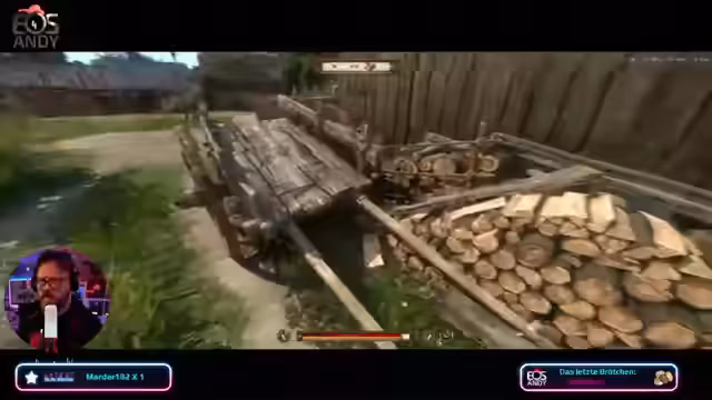 01:52:08Nach einer Abstimmung startet der Streamer das Spiel 'Kingdom Come: Deliverance'. Er beginnt das Tutorial, das mit dem brutalen Überfall auf sein Heimatdorf beginnt, bei dem seine Eltern getötet werden. Er muss nun seine Eltern begraben und sucht dafür eine Schaufel. Die ersten Kämpfe gegen Banditen gestalten sich schwierig und er muss lernen, mit dem Kampfsystem umzugehen. Das Spiel speichert nur, wenn der Charakter trinkt, was eine begrenzte Ressource ist.