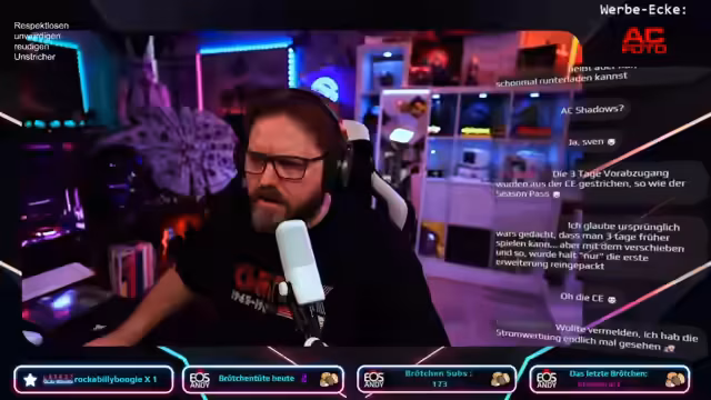 00:17:00Der Streamer kommt spät zum Stream, da er noch Bilder für Mittellohn abliefern musste. Er begrüßt die Zuschauer und erwähnt, dass das Spiel Assassin's Creed Shadows bald erscheint. Obwohl er über 100 Stunden in Valhalla verbracht hat, ist er noch nicht durch die Hauptstory gekommen. Er äußert seine Vorfreude auf Shadows, insbesondere weil das gleiche Team wie bei Odyssey hinter dem Spiel steht und er tausende Stunden in der Assassin's-Creed-Reielle verbracht hat.