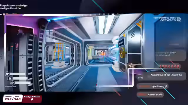 02:31:49Bei dem Versuch, eine Tür mit einer Bombe zu öffnen, zerstört der Streamer versehentlich die Bombe, ohne die Tür zu öffnen. Dies führt zu Frustration, da Bomben nicht immer leicht zu finden sind. Er findet jedoch weitere Zugangskarten und entdeckt neue, unerkundete Bereiche des Raumschiffs. Mit zwei Schlüsseln plant er, ein weiteres Tor zu öffnen, um noch mehr Schätze zu finden. Er entdeckt einen Raum voller wertvoller Gegenstände und sammelt diese ein. Die Suche nach dem Ausgang erweist sich erneut als schwierig, da er sich in den verwinkelten Gängen verläuft. Er plant, weitere Bäume zu pflanzen und die Produktion auf seiner Basis zu optimieren.