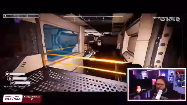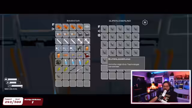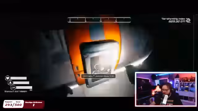 00:50:39Der Streamer plant eine Reise zu einem neuen Planeten mit der Seltenheitsstufe 5 und Schwierigkeitsstufe 3. Er bereitet sich auf die Reise vor, indem er die benötigten Ressourcen wie Kernfusionen, Essen und Wasser zusammenstellt. Er stellt fest, dass er Obsidian benötigt, aber seine Produktionsmaschine dafür scheinbar nicht effizient arbeitet oder die Ressourcen sofort verarbeitet werden. Auf dem neuen Planeten angekommen, erkundet er die Umgebung und findet ein Raumschiff. Er muss sich durch das Schiff navigieren, um wertvolle Gegenstände wie Zugangskarten und Baupläne zu finden, wobei er sich oft verläuft und Orientierungshilfen wie Lampen nutzt.