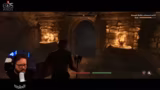 00:26:52Der Streamer beginnt mit einer Quest, bei der er ein Amulett für König Joffrey bringen muss. Er reitet durch die Welt, stiehlt ein Pferd und erreicht verschiedene Orte wie Katakomben und verlassene Gebäude. Während seiner Erkundung trifft er auf verschiedene Gegner wie Vampire, Kobolde und andere Monster. Er kämpft mit verschiedenen Waffen und zaubern kann er noch nicht. Er findet auch verschiedene Gegenstände wie Gold, Reparaturhammer und Pfeile und lernt nach und nach die Spielmechaniken kennen.