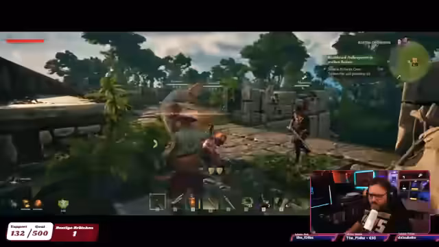 00:28:45Nach mehreren Kämpfen und dem Tod des Streamers, versucht er sein Schiff zu erreichen, scheitert jedoch zunächst. Es folgen Gesangseinlagen und er stellt fest, dass seine Ressourcen unverändert sind. Der Streamer entdeckt einen weiteren Außenposten, kämpft gegen Leutnants und sammelt Goldmünzen. Er trifft Entscheidungen über Ausrüstung und Vorräte, während er die Insel weiter erkundet.
