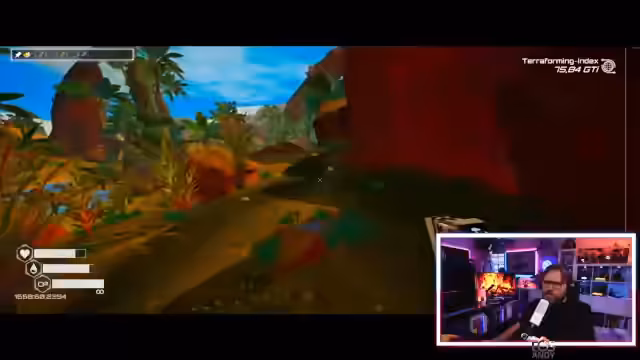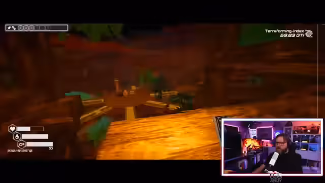 03:31:45Bei der Erforschung eines Schiffes, das der Streamer für den Anfang des Spiels hält, öffnen sich plötzlich verschlossene Türen und er findet Nahrung. Er bemerkt, wie der Planet sich vom kargen Wüstenbild zu einer bewohnbaren Welt entwickelt hätte, wenn es eine bessere Grafik gäbe. Er ist sichtlich überrascht, dass Türen offen sind, die vorher verschlossen waren, und macht sich Gedanken über das Gameplay und die fehlenden Ressourcen wie das lebenswichtige Wasser, das er vergessen hat mitzunehmen.