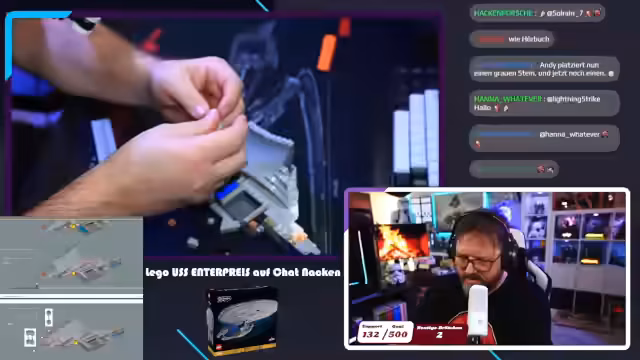 01:49:18Während des Bauvorgangs bemerkt der Streamer, dass einige Teile, wie ein Pult, nicht verbaut wurden, was er auf einen Fehler in der Bauanleitung zurückführt. Er unterhält sich parallel über Star-Trek-Charaktere und Schauspieler, insbesondere Dr. Crusher und Seven of Nine, die er sehr schätzt. Gleichzeitig erwähnt er technische Probleme bei seinen Haustieren, die ihn ablenken, und stellt Fragen zum Thema Datensicherheit im Zusammenhang mit seinem neuen NAS-System.