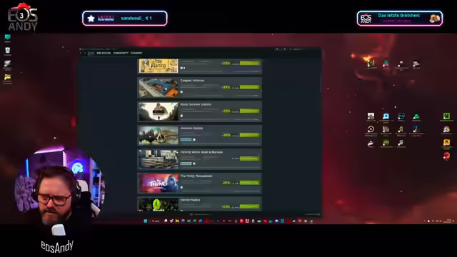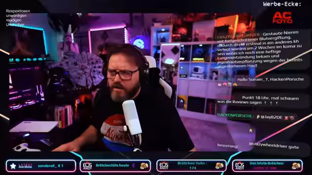 02:08:59Aufgrund von starker Ermüdung und Augenbeschwerden, verursacht vom Tragen einer Brille den ganzen Tag, beschloss der Streamer, den Stream vorzeitig zu beenden. Um seine Gesundheit zu schonen, bat er die Zuschauer, das Spielen einzustellen. Er kündigte an, sich erst Donnerstag um 14 Uhr wieder zu sehen und bedankte sich für den tollen Stream.