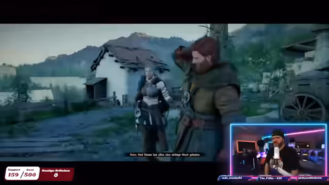 00:30:21Nach technischen Vorbereitungen startet das Gameplay in Crimson Desert. Der Streamer erkundet eine neue Umgebung mit vielen Spinnen, die ihn stören. Er findet Gegenstände wie einen Wetzstein und stößt auf ein Schloss, das er öffnen muss. In der neuen Gegend trifft er auf Feinde und nimmt neue Missionen an, darunter das Errichten einer Statue für eine Göttin und die Beschaffung von Baumaterial. Parallel dazu sucht er einen Heiler für spezielle Kleidung.