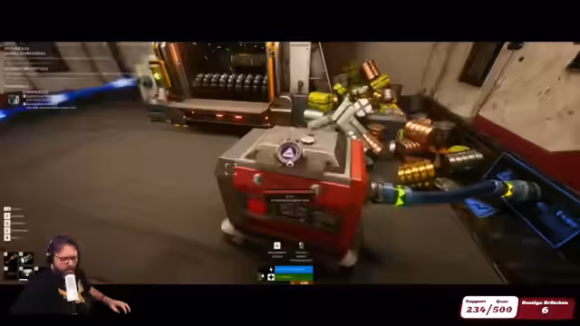 01:06:40Der Streamer startet ein Crafting-Spiel (wahrscheinlich Satisfactory oder ähnlich). Zunächst werden Munition und Ressourcen hergestellt. Es gibt Schwierigkeiten mit der Spielmechanik: Gegenstände können nicht abgelegt werden, die Navigation ist unklar. Der Streamer baut eine Fabrikationsanlage, scheitert aber an grundlegenden Funktionen wie dem Ablegen von Gegenständen. Die Produktion von Patronen und die Suche nach Bauplänen dominieren die Szene.