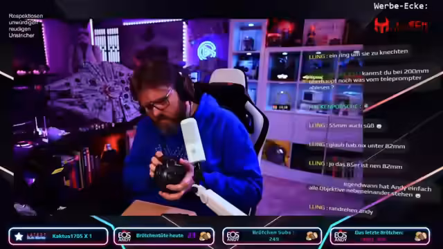 Ein neues Objektiv und ein Teleprompter von Elgato wurden vorgestellt. Zunächst gab es Probleme beim Anbringen des Objektivs am Teleprompter. Es wurden die zukünftige Nutzung des Objektivs und Teleprompters erläutert, sowie Pläne für ein Shooting mit Svetlana am Wochenende geschmiedet. Abschließend Einblicke in Kingdom Come: Deliverance II und den Grafikkartenmarkt.