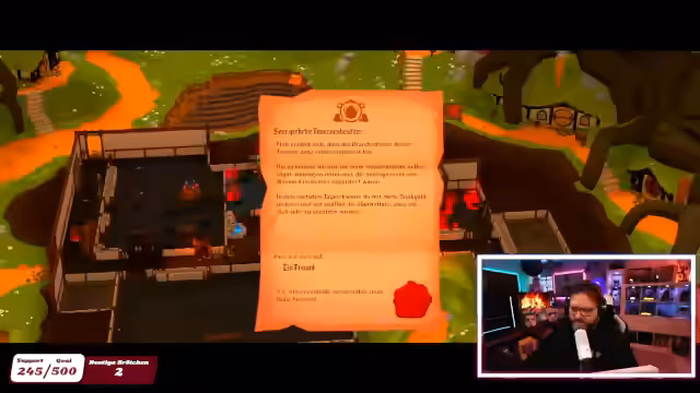 04:37:41Die Bewältigung des Schädlingsproblems in Gugamuk erweist sich als komplexe Aufgabe. Der Streamer lernt, wie Nester entstehen und entfernt, verliert dabei aber die Zufriedenheit seines Personells. Eine Erfinderin namens Vera wird auf ihn aufmerksam und schickt ihm Fässer für Experimente, die als neuer Einnahmequellen dienen könnten. Der Fokus liegt nun darauf, die Taverne auf ein Sternen-Level zu heben, um die Experimente freizuschalten.