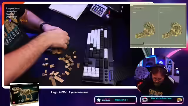 01:30:02Nachdem die zuvor behandelten Themen durchgearbeitet wurden, konzentriert sich der Streamer vollständig auf den Bau des Lego-Sets. Er beschreibt die einzelnen Bauphasen, stellt dabei fest, dass einige Teile komplexer sind als erwartet, und erwähnt gelegentlich fehlende oder verschwundene Teile. Der Prozess wird als sehr spaßig und detailreich beschrieben, wobei der Fokus auf dem Zusammenbau des großen und beeindruckenden Dinosauriers liegt, der nach und nach Gestalt annimmt.