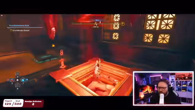 00:00:00Der Stream beginnt mit dem Kommentar „Oh, nee.“ und der Erwähnung des Starts des Spiels. Es wurden Sequenzen gezeigt, in denen die Heldin Phoenix Soldaten und ihren Bruder retten will. Der Streamer äußerte sich unzufrieden mit der Präsentation und schlug vor, diesen Teil zu überspringen, da er für die Atmosphäre wichtig sei, aber langweilig wirkte. Anschließend tauchte ein Charakter namens Prometheus auf, der die Heldin als ihre Rettung ansieht, und es wurde eine Ankündigung gemacht, ein Orakel im Tempel des Apollon aufzusuchen.