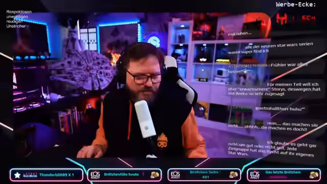 00:23:04Die Diskussion dreht sich um Star Wars, insbesondere die neueren Disney-Serien. Die Streamerin äußert sich kritisch über die kurzen Folgen und wartet sehnsüchtig auf 'Andor 2'. Trotzdem findet sie in jeder Serie etwas Positives und betont, dass es gut ist, dass das Franchise am Leben erhalten wird. Besonders gelobt wird 'Andor' für seinen erwachseneren Ansatz und die Darstellung des Imperiums. Es wird die Schwierigkeit angesprochen, Star Wars wie in der Kindheit zu erleben, da man als Erwachsener zu viel analysiert und vergleicht. Die Streamerin erklärt, dass viele neue Sachen deshalb nicht mehr gefallen, weil die kindliche Naivität fehlt. Sie selbst bevorzuge inzwischen erwachsenere Geschichten, weshalb ihr 'Andor' so zusagt. Abschließend wird die Vorfreude auf kommende Star Wars-Folgen betont, unabhängig von ihrer Qualität, und die Möglichkeit, jederzeit zu den alten Filmen zurückzukehren.