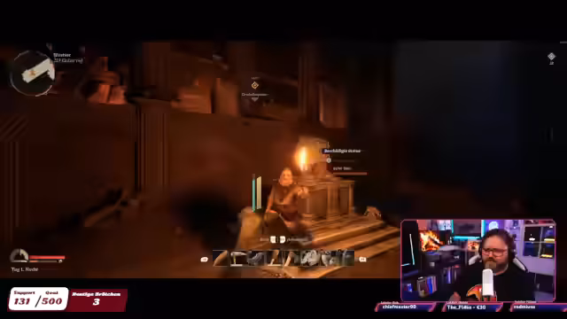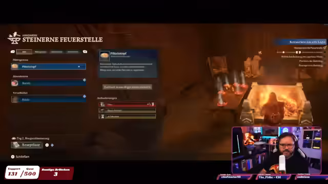 01:06:56Im weiteren Spielverlauf von Windrose erkundet der Streamer die Welt, sammelt Ressourcen und stellt Werkzeuge her. Er stößt auf verschiedene Statuen und muss Rätsel lösen, wie die Türen von Durin zu öffnen sind. Dabei unterhält er sich mit NPCs und findet Gegenstände wie eine Fackel und einen Eichenschild. Gleichzeitig muss er Inventarprobleme lösen und entscheidet, ein Lager zu bauen, um Ressourcen besser zu organisieren. Der Streamer zeigt sich von der Spielwelt beeindruckt, aber auch von den vielen Herausforderungen, die sich ihm stellen.