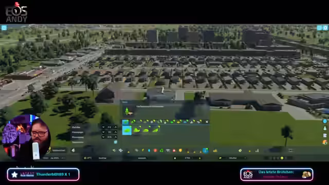 01:23:30Die Stadt 'Eosheim' wächst und der Streamer beginnt mit der Ausdehnung des Wohngebiets und dem Bau von Geschäftsflächen. Es entstehen erste Herausforderungen wie Verkehrsstaus und die Notwendigkeit weiterer Einrichtungen wie einer Mülldeponie und eines Friedhofs. Die Wirtschaft ist anfangs defizitär, und der Streamer experimentiert mit der Besteuerung, um die Finanzen zu stabilisieren.