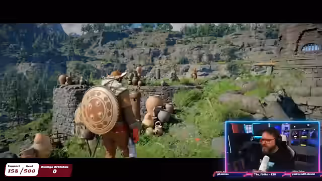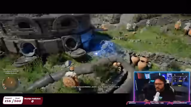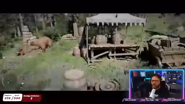 01:30:14Auf dem Weg zu seinem neuen Ziel wird der Streamer von einem Bären angegriffen, den er besiegen kann. Anschließend erklimmt er einen steilen Berg und gelangt zur Wurzelfestung, einem Außenposten einer Fraktion. Er interagiert mit den Einheimischen und erfährt mehr über die Gegend und die dortigen Missionen, bevor er eine Höhle untersucht, in der er Schätze und Artefakte findet.