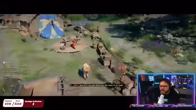 00:48:46Auf der Suche nach einer Apothein reist der Streamer in ein neues Dorf, das von Banditen angegriffen wurde. Nachdem er die Situation untersucht hat, wird er zu einem Wettkampf in der Arena eingeladen. Um eine Belohnung zu erhalten, muss er dreimal in der Arena kämpfen und den Sieg erringen. Nach den erfolgreichen Kämpfen erfährt er von einer neuen Fraktion und einem Auftrag, der ihn in eine ferne Gegend führt.
