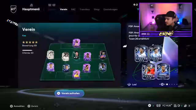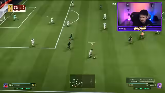 00:25:19Nach verschiedenen Themen und Pack-Öffnungen startet der Streamer Weekend League-Spiele. Er verwendet ein Team mit Spielern wie Inaki Williams und wechselt während der Matches, um die Chemie zu optimieren. Die Spiele sind oft von taktischen Fehlern, Abseitsentscheidungen und der allgemeinen Frustration des Streamers geprägt. Trotzdem gelingen ihm einige Tore und Siege, wobei er sein Spiel als holprig beschreibt.