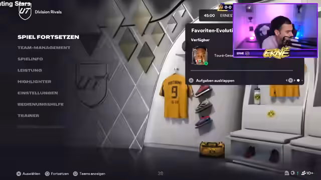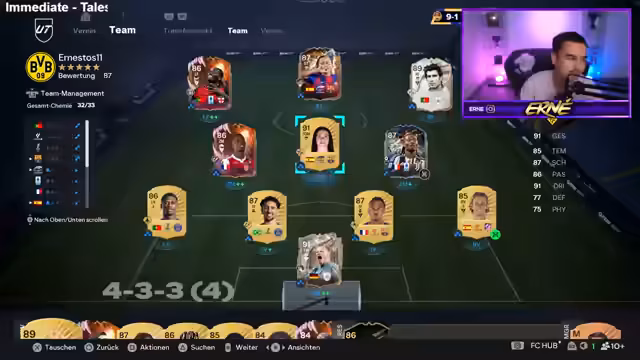 00:02:26Ernesto beginnt den Stream mit den Vorbereitungen für die Weekend League auf seinem Main-Account. Nach anfänglichen technischen Schwierigkeiten mit Streamlabs und persönlichen Themen wie dem Wetter, konzentriert er sich auf die Teamzusammenstellung. Er hat knapp eine Million Münzen zur Verfügung und überlegt, welche Spieler er für die Weekend League nutzen oder weiterentwickeln soll. Ein Fokus liegt auf dem nutzen neuer Evolutionskarten, um den Wert von Spielern wie Thuram zu maximieren, indem man sie in neue Evolutionskarten packt, um sie aufzuwerten und ihnen bessere Playstyles zu verleihen.