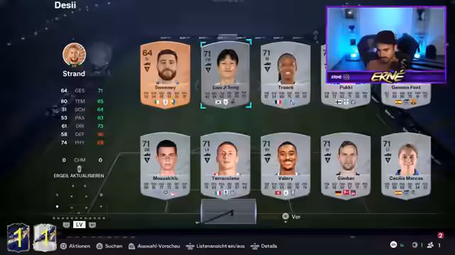 04:35:02Der Streamer beginnt sein RTG-Team neu zu gestalten. Er wählt im Rahmen einer Kampagne-Mix-Profiwahl Spieler wie Cordoba und Rotmann aus und begründet seine Entscheidungen mit den Spielstilen und Stats. Gleichzeitig wird über zukünftige Inhalte wie ein eventuelles Full-Toti-Event gesprochen. Der Fokus liegt darauf, das Team stärker zu machen und eventuelle Upgrades für die Saison zu planen.