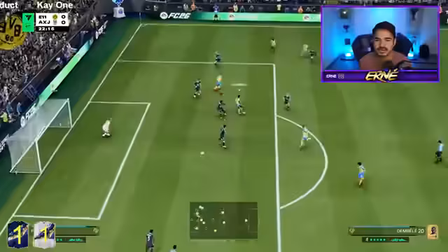 02:00:10Ein Tor des Gegners führt zu hitzigen Reaktionen im Stream, der Streamer beschreibt das Tor als geisteskrank und selbstverschuldet. Der Chat wird beschuldigt, die Entscheidung für die Musik getroffen zu haben, die zum Gegentor führte. Trotz des Rückstands zeigt sich der Streamer humorvoll und betont, dass es nur um Unterhaltung geht. Später gelingt ein selbst erzielter Tor, was zu weiterer Begeisterung und Kommentaren im Chat führt.