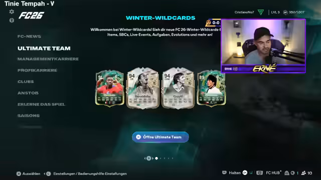 00:00:00Ernesto startet den Stream mit einer Entschuldigung für die Verspätung und verweist auf sein ausführliches Statement zur 'Greenwood-Thematik' auf TikTok und Twitter, über das er im Stream nicht weiter diskutieren möchte. Er kündigt das neue EAFC-Event an, das als 'krassestes Event seit langem' beworben wird. Zudem thematisiert er kurz seine Hautprobleme und Friseurprobleme, die ihn zum Tragen einer Cap bewegen. Der Fokus liegt auf dem bevorstehenden Gameplay und Pack-Öffnungen, wobei er bereits erste SBCs vorbereitet hat.