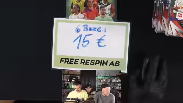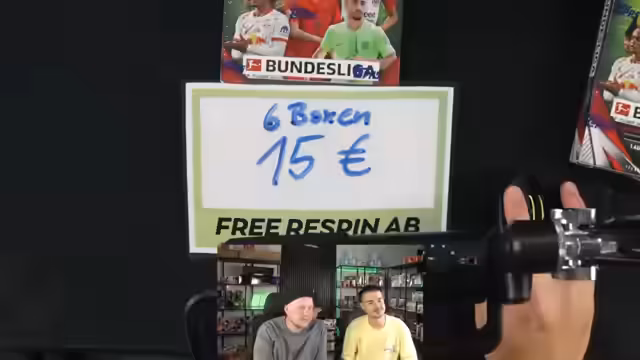 00:07:35Der Stream konzentrierte sich auf die Eröffnung von sechs Topps Chrome Bundesliga Boxen im Rahmen eines Case-Breaks. Jeder Spot umfasste eine ganze Box, und der Streamer betonte, dass die Base-Karten zufällig an die Käufer verteilt werden. Die Spot-Preise starteten bei unter zwei Euro pro Box, und es wurde die Möglichkeit eines Re-Spins für 15 Euro pro Spot beworben. Der Prozess der Eröffnung und die Verteilung der Karten wurden live im Stream gezeigt.