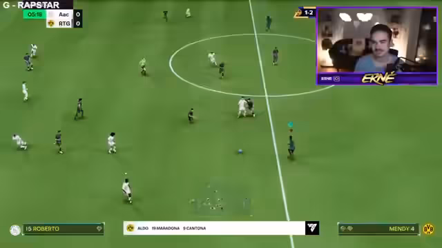 01:58:28Nachdem das Team mit der neuen Verstärkung Da Costa komplett ist, beginnt der Streamer mit Weekend-League-Qualifikationsspielen. Er testet verschiedene Spieler und Chemie-Styles, um die optimale Aufstellung zu finden. Dabei wird der Stürmer Gervinho in den Fokus genommen, welcher im Vergleich zu anderen Optionen wie Dumbia oder Cantona favorisiert wird. Auch der neue Flachschuss-Playstyle bei Spieler Gnabry wird getestet und als sehr effektiv beschrieben. Das Gameplay wird von technischen Verbindungsproblemen unterbrochen, was den Streamer frustriert.