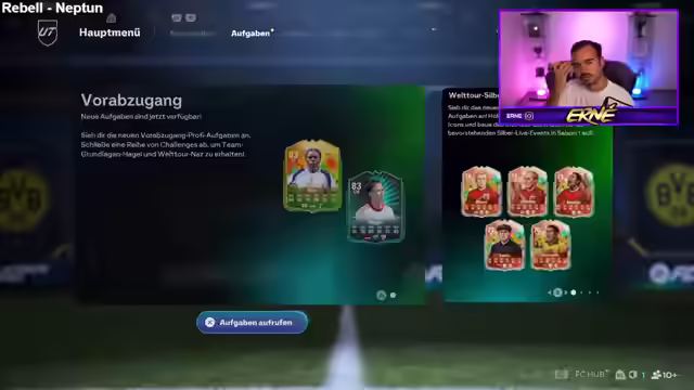 05:53:07Der Streamer setzt seine Bemühungen fort, die Sterne-Aufgaben abzuschließen, und nähert sich dem Ziel. Er startet eine Wette bezüglich des Inhalts des bevorstehenden Packs. Er spricht über persönliche Vorlieben bezüglich Musik und kündigt eine FIFA-Verlosung auf seinem Instagram-Account an. Er fragt den Chat nach der Anzahl der benötigten Sterne und konzentriert sich darauf, die letzten Aufgaben zu erledigen. Trotz einiger Schwierigkeiten und der knappen Zeit gelingt es ihm, die erforderliche Anzahl an Sternen zu sammeln. Er beendet die Wette und bereitet sich darauf vor, das 50k-Pack zu öffnen.