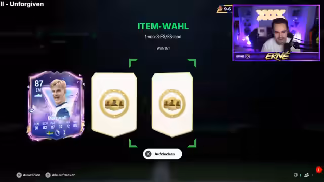 00:11:07Ernesto beginnt die Weekend League mit einem Stand von 5-0. Er diskutiert über Cristiano Ronaldo und zieht einen Vergleich zu Mbappé. Der Fokus liegt nun auf dem RTG-Account. Squad Battles Rewards werden geöffnet, wobei das Interesse an Elimination Chamber und der Gültigkeitsdauer der Weekend League thematisiert wird. Es folgt die Erkenntnis, dass die Weekend League bis Dienstag läuft. Die erhaltenen Player Picks werden als wenig zufriedenstellend bewertet. Zudem kündigt Ernesto an, dass Betting in der kommenden Woche fortgesetzt wird und er sich noch nicht sicher ist, womit er beginnen soll. Als mögliche Spiele für kommende Streams werden Ghost of Tsushima oder Indiana Jones genannt.