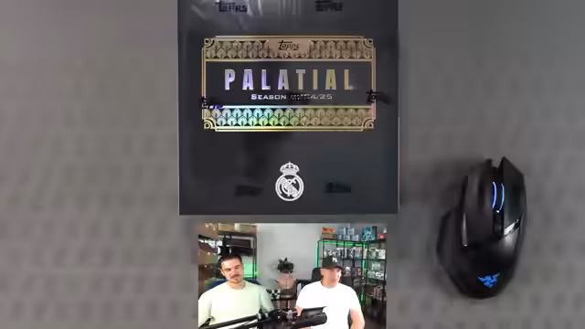 00:16:30Nach technischen Vorbereitungen und der Lösung von Lampenproblemen startet der Streamer mit der Eröffnung der ersten Palacio Box. Diese Box enthält nur fünf Karten, von denen jedoch einige sehr seltene Exemplare wie eine One-of-One Karte enthalten sein können. Während der Öffnung werden zahlreiche Hits wie Karim Benzema, Vinicius Junior und Rodrigo gezogen und die Gewinner im Chat bekanntgegeben. Eine leere Palacio Box wird zusätzlich international als Follower-Giveaway verlost.