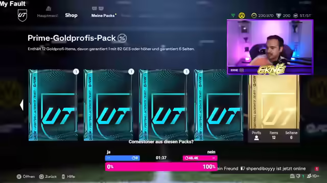 00:15:14Die Teilnahme am Eli Geller Cup am Montag wird bestätigt und die Vorfreude darauf ausgedrückt. Es wird über die eigenen Nervosität bei solchen Cups gesprochen und wie man versucht, diese in den Griff zu bekommen. Zudem wird erwähnt, dass Azam am Sonntag ein Turnier veranstaltet. Es wird über die aktuellen Preise im Spiel diskutiert und spekuliert, ob es einen Preisverfall gab. Anschließend werden verschiedene Packs geöffnet, darunter seltene gemischte Tütepacks. Es werden verschiedene Spieler gezogen und kommentiert. Es wird erwähnt, dass man eine Story auf Instagram gemacht hat, wo man eine Playstation 5 inklusive EAFC gewinnen kann. Es wird überlegt, ob man später mit RTG weitermachen soll. Es wird erwähnt, dass man eine hohe Position in einer Transportfirma in der Schweiz hat. Später soll es mit RTG weitergehen.