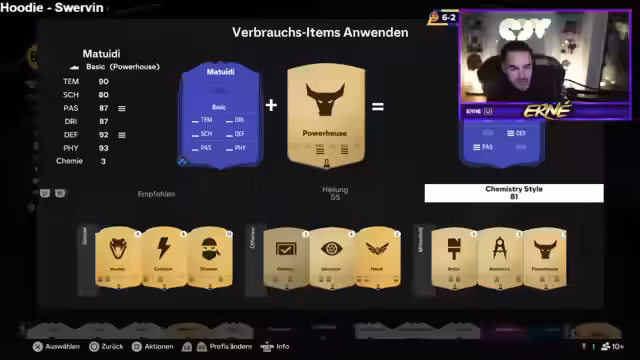04:36:21Nach den aufreibenden Spielen entscheidet sich der Streamer, ein Pack zu öffnen, und zieht sofort den wertvollen Xavi. Diese seltene Karte, die bereits am Vortag gezogen wurde, begeistert den Streamer und den Chat. Die Freude ist riesig, da der gezogene Spieler (Matuidi) perfekt ins Team passt und wertvolle Chemiepunkte bringt. Aus dem restlichen Pack, das der Streamer öffnet, werden weitere bekannte Spieler wie Lahm gezogen, die die Verärgerung über das zuvor verpatzte Spiel in Euphorie verwandeln.