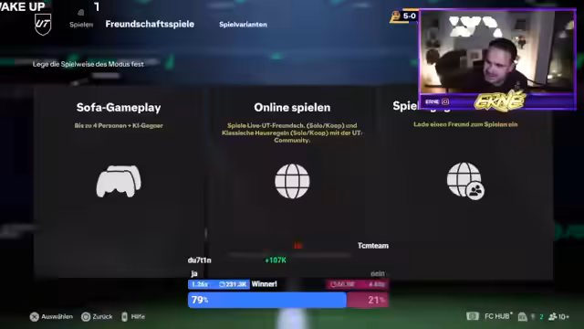 01:01:02Ernesto hat Schwierigkeiten, sich für das Turnier anzumelden und muss sich neu anmelden. Er findet seinen Gegner, Mochio, und versucht, ihn über Playstation Network zu adden. Er erklärt, wie man sich online setzt und zur Ergebnismeldung gelangt. Zuschauer geben Tipps zum Hinzufügen des Gegners. Ernesto startet das erste Turnierspiel und stellt fest, dass sein Gegner stark ist. Er gerät in Rückstand und sucht Rat im Chat. Er wechselt seine Taktik und versucht, das Spiel zu drehen. Trotz einiger vielversprechender Aktionen verliert er das erste Spiel mit 8-3. Ernesto meldet das Ergebnis und stellt fest, dass es falsch angezeigt wird. Er wartet auf die nächste Runde und macht in der Zwischenzeit Wetten für die 85-Plus-Spieler. Er vermutet, gegen einen E-Sportler gespielt zu haben, da sein Gegner im Offline-Finale war. Ernesto nimmt die Niederlage sportlich und betont, dass man aus solchen Turnieren lernt. Er öffnet Packs und überlegt, ob er eine neue Evo für seinen RTG-Account nutzen soll. Der nächste Gegner steht fest.