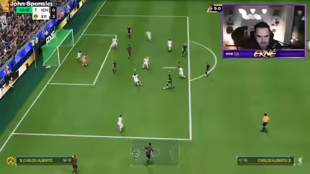 02:16:01Das Turnier des BVB beginnt, an dem ernesto teilnimmt und gute Gegner erwartet. Nach einem etwas holprigen Start und einem Tor in der letzten Minute des ersten Durchgangs, geht er mit einer 3-0-Führung in die Pause. Im Chat wird die Dominanz der ersten Halbzeit gefeiert, während der Streamer sich auf die zweite Hälfte konzentrieren muss, um den Vorsprung zu halten. Die Spieltaktik funktioniert offensichtlich gut, weshalb der Aufruf an den Chat lautet, das Spiel ruhig durchzuziehen.