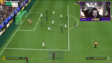 01:01:02Das erste Turniermatch beginnt gegen einen Gegner namens Mochio. Es entwickelt sich zu einem hochspannenden und torreichen Spiel, das mit einem Unentschieden endet und daher im Golden Goal-Modus entschieden wird. Der Gegner als erfahrener E-Sportler zeigt starkes Pressing und präzante Schüsse, während der Streamer seine taktischen Schwächen offenbart und unter Nervosität leidet. Nach intensiven Zweikämpfen verliert er das Match mit 5-8 nach Verlängerung, was ihn frustriert, aber auch Respekt für die Leistung des Gegners zeigt.