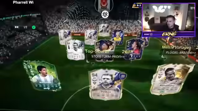03:08:33Nach Beendigung der Spiele werden die wöchentlichen Belohnungen der Weekend League vorgestellt. Es erfolgt eine detaillierte Vorstellung der gezogenen Karten, darunter seltene Informs und ein hochbewerteter Spieler namens Rafinha, der als bester gezogen gilt. Der Streamer zeigt sich von der Qualität der Belohnungen begeistert und hebt besonders die Vielfalt und die hohen Marktwerte der Spieler positiv hervor.