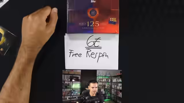 00:00:00Der Stream beginnt direkt mit der Öffnung der "125 Jahre Barcelona"-Box. Es werden die enthaltenen Packs und die möglichen Kartenarten wie Unterschriften, Trikotstücke und Relics erläutert. Gleichzeitig wird der laufende Topps Chrome Bundesliga Case Break vorgestellt, bei dem Spots für ein ganzes Case zu haben sind. Die Zuschauer werden aufgerufen, Gebote für die Spots abzugeben und an den Käufer-Giveaways teilzunehmen.