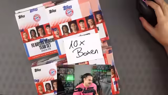 00:00:00Der Stream beginnt mit technischen Schwierigkeiten bei Whatnot, Zahlungen funktionieren nicht korrekt und es gibt Stornos. Der Streamer erklärt das Format des Half-Case-Breaks, bei dem Kunden aus 10 Boxen Karten erhalten. Es werden verschiedene Spots für die Auktionen präsentiert, wie zum Beispiel das Bayern Team Set und Manchester City Boxen.