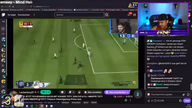 04:14:36Das Weekend-League-Spiel beginnt und gestaltet sich von Anfang an äußerst nervös und unfair für Ernesto. Er spielt gegen einen deutschen Gegner, den er für einen Bastard hält und der lautStreamer scheinbar von Glück begünstigt wird. Das Matchmaking wird als unfair kritisiert, da Ernesto das Gefühl hat, EA Sports würde den Gegner bevorzugen. Trotz einer早期的 Führung erleidet er eine bittere Niederlage in der Verlängerung, was ihn wütend und frustriert zurücklässt.