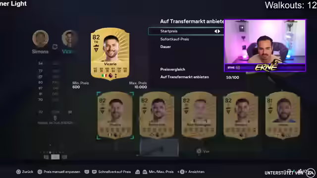 00:04:36Der Stream startet mit guter Laune und der Ankündigung, dass der Grind in EA FC 26 weitergeht. Nach wenig Schlaf ist die Motivation hoch, und es wird direkt ins Gameplay eingestiegen. Es gab bereits vier Walkouts, die in einem YouTube-Video präsentiert werden. Der Fokus liegt auf dem 14-Uhr-Release, bei dem auch die Zuschauer mitspielen können. Es wird überlegt, ob der Streamer heute Abend Mafia aufnimmt, da noch nicht alle online sind. Ein Highlight ist der Spieler Koundé, der für 120k gekauft wurde und möglicherweise für 210k verkauft werden soll. Es wird überlegt, welche teuren Spieler interessant wären, und verschiedene Optionen wie Militao und Konate werden diskutiert. Der Streamer plant, mit großen Spielern große Gewinne zu erzielen, anstatt viele kleine Spieler zu kaufen. Es wird auch überlegt, ob Leao gekauft werden soll, der im Preis gesunken ist. Der Streamer erwähnt, dass er wieder regelmäßig streamen wird und schlägt eine Wette vor, ob bis 33k Points ein Walkout gezogen wird.