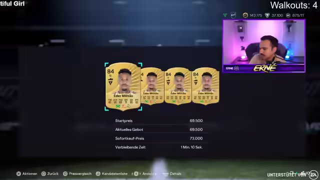 04:30:20Es werden weiterhin Packs geöffnet, jedoch mit wenig Erfolg. Der Streamer zieht Williamson und äußert seine Frustration über die häufigen Frauenspieler in den Packs. Er startet weitere Wetten und kommentiert die steigenden Preise von Spielern wie Puteas. Es wird überlegt, ob Frimpong verkauft werden soll. Der Streamer klagt über Hunger und die stickige Hitze im Raum und kündigt eine kurze Lüftungspause an. Nach der Pause spricht er über seine Coin-Situation und die Erwartung, dass die Preise um Mitternacht sinken werden. Er fragt den Chat nach Empfehlungen für Spieler, die er kaufen könnte, verwirft aber teure Optionen wie Rafinha. Er erwähnt, dass er Kolomuani direkt für 10k verkaufen konnte und überlegt, ob er heute Abend mit der Road to Glory (RTG) starten soll.