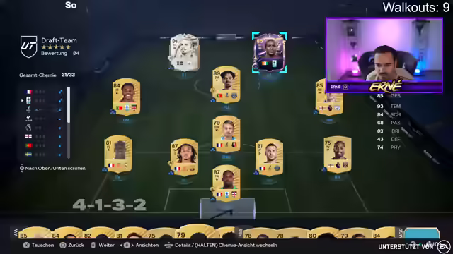 02:35:51Es wird in den Draft-Modus gewechselt, um sich vom Traden abzulenken. Es werden Walkouts gezogen und ein Draft-Team zusammengestellt. Es wird über die Formation und die Auswahl der Spieler diskutiert. Es wird gehofft, dass das Draft-Team erfolgreich sein wird und gute Belohnungen bringt. Es wird überlegt, ob man Ibrahimovic ins Team nehmen soll, da er dem Streamer ähnlich sieht. Es wird über die Chemie des Teams und die Positionierung der Spieler diskutiert. Es wird ein französischer Trainer aus der Premier League gesucht, um die Chemie zu verbessern. Es wird überlegt, ob man Leao einwechseln soll. Es wird eine Wette abgeschlossen, ob das Draft gewonnen wird. Es wird gehofft, dass Ibrahimovic im Spiel gut performen wird. Es wird überlegt, welche Playstyles Ibrahimovic hat. Es wird überlegt, ob man Ibra auch im Icon-Pack ziehen könnte.