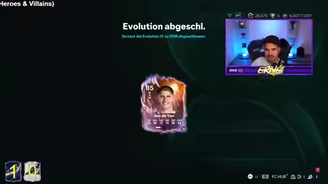 04:12:02Nachdem Thunderveen erfolgreich in eine ZDM-Evolution gesteckt wurde, plant der Streamer, ihn weiter in eine ZOM-Evolution zu überführen, um zusätzliche Attribute und Playstyle-Plus zu erhalten. Er erwähnt, dass er 50.000 Münzen benötigt, um die Evolution abzuschließen, und diskutiert mit dem Chat, ob er Firmin oder Messi in die Evo einbauen soll. Parallel bereitet er sich auf die Weekend League vor, indem er über mögliche Spieler und Strategien nachdenkt.