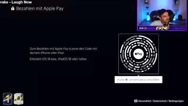 01:22:49Der Streamer beginnt mit dem Öffnen von Stürmerpacks und ärgert sich über Duplikate, die Mbappé verhindern. Er versucht, Punkte aufzuladen und hat Probleme mit dem Team-Setup. Später konfrontiert er die Zuschauer mit Fragen zu Apple Pay, da er die Funktion nicht versteht und experimentiert mit dem Scannen am Handy, was zu Verwirrung führt, bis er schließlich eine Zahlung erfolgreich durchführt und sich über das Ergebnis freut.