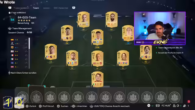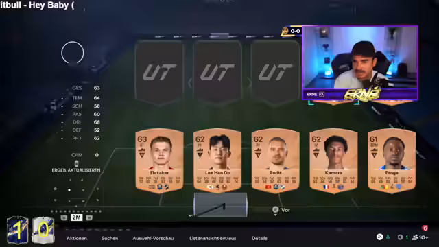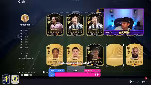 00:01:36Der Livestream von Ernesto beginnt mit einer Begrüßung der Zuschauer, wobei der Streamer sich für die Verspätung entschuldigt und die Community zum Mitmachen einlädt. Es werden die neuen TOTY-Inhalte vorgestellt, darunter ein neu eingeführter Icon-Pick mit 87+ Spielern, der hohe Anforderungen an Spielerkarten stellt, sowie die Frimpong-SBC mit 97 Pace und starke Evolutions wie die 'Tore wie Kilian' Evolution für 50k Münzen, die potenziell für Karten wie Messi oder CR7 genutzt werden kann. Zusätzlich wird auf tägliche Anmeldungen und wichtige SBCs hingewiesen, die für den TOTY-Event essenziell sind, und die ersten Pack-Öffnungen werden angekündigt.