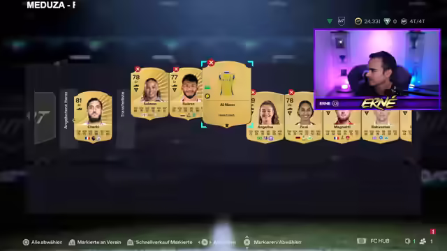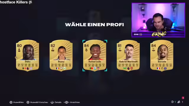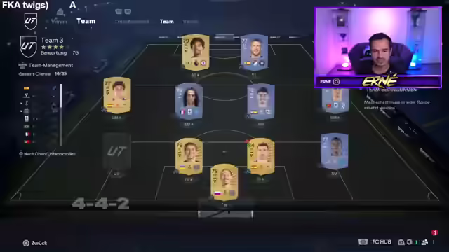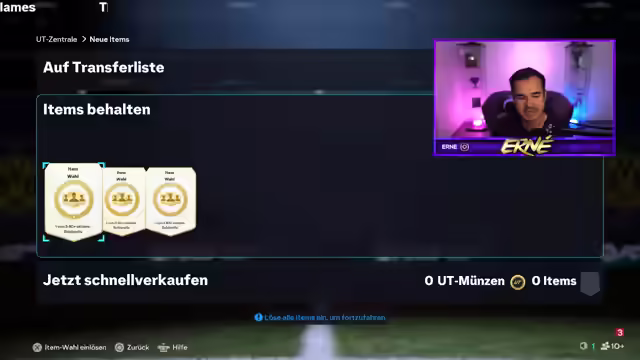 00:39:17Der Streamer ist frustriert, dass er keine Walkouts zieht und überlegt, was er mit den untauschbaren Spielern machen soll. Er zieht Balde, den er gut für RTG gebrauchen könnte, aber nicht verkaufen kann. Die Wette wird als verloren betrachtet. Der Streamer überlegt, ob er die Ausbildung bei der Telekom empfehlen kann und bejaht dies. Er fragt sich, was er jetzt tun soll und erwähnt, dass er den Cup spielen muss, um drei Siege in Folge zu erzielen. Er braucht drei verschiedene Teams. Der Streamer öffnet aus Verzweiflung ein Vorschau-Pack, zieht aber Ibrahimovic, was ihn nicht weiterbringt. Er diskutiert mit dem Chat über das Team und die Vorbesteller-Points. Der Streamer betont, dass er kein Geld in das Spiel investiert hat. Er erklärt, dass er zuerst den Cup spielen wird und danach eventuell einen Draft macht. Er gibt sein Bestes, um das Hero-Pack zu bekommen. Der Streamer schaut sich den Saisonpass an und entdeckt die Road to Knockout. Er startet eine Wette, ob er alle drei Spiele hintereinander gewinnen wird. Er betont, dass er kein Geld auflädt und ein Mann ein Wort ist. Der Streamer trinkt einen Kaffee und bereitet sich auf die Cup-Spiele vor.