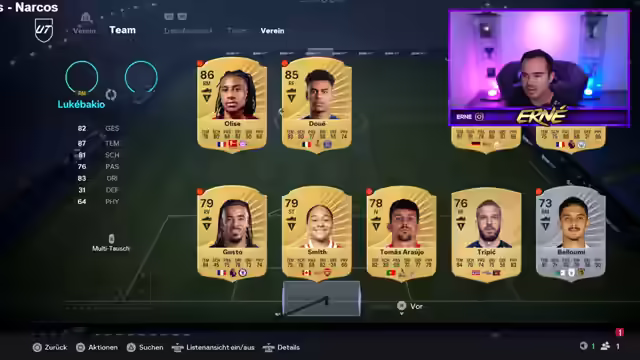 01:34:16Der Streamer analysiert sein SPC-Futter und überlegt, welche Spieler er für die SBC verwenden kann. Er stellt fest, dass er noch Spieler kaufen muss, um die Anforderungen zu erfüllen. Es wird überlegt, ob Kane gekauft werden soll, aber er ist zu teuer. Der Streamer sucht nach günstigeren Alternativen mit hohem Rating. Er findet Irene Paredes und Hebs und versucht, sie zu ersteigern. Schließlich gelingt es ihm, beide Spieler zu erwerben und die erste SBC für das Hero-Pack abzuschließen. Der Streamer öffnet ein Elektro-Profis-Pack und hofft auf weitere Verstärkungen. Er hat jedoch nur noch 19.000 Münzen und bezweifelt, dass er das Hero Pack bekommen wird. Der Streamer verkauft Spieler von seiner Transferliste, um mehr Münzen zu erhalten. Er plant einen Draft, um sein Glück zu versuchen und das Hero-Pack doch noch zu bekommen.