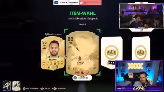 01:35:32Nachdem zahlreiche Pack-Öffnungen durchgeführt wurden, bleibt das Ergebnis trotz vieler geöffneter Packs enttäuschend. Stattdessen hochbewertete Spieler wie Ronaldo werden gezogen, aber sie sind nutzlos und nur zum Handel gedacht. Der Streamer äußert seinen Frust darüber, dass er keine nützlichen Spieler für sein Team gezogen hat und dass die Pack-Ergebnisse nicht den Erwartungen entsprechen. Er überlegt, den Account zu wechseln und stattdessen Weekend League zu spielen, um das Glück zu wenden.