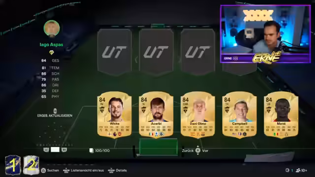 01:31:36Der Stream beginnt mit dem Öffnen von Numerous FIFA-Packs, hauptsächlich aus der SBC-Aufbewahrung. Der Streamer zählt die Anzahl der Packs und zeigt seine Begeisterung über die Größe des Containings. Er erwähnt bekannte Spieler wie Edrin Star und den Hype-Trainer-Star und zeigt sein aktuelles Team auf, das aus First-Ownern besteht. Es geht darum, neue Spieler zu ziehen und die Qualität des Teams zu verbessern. Der Streamer betont, dass er die gewünschten Spieler benötigt und seine Erwartungen an die Pack-Ergebnisse hoch sind.